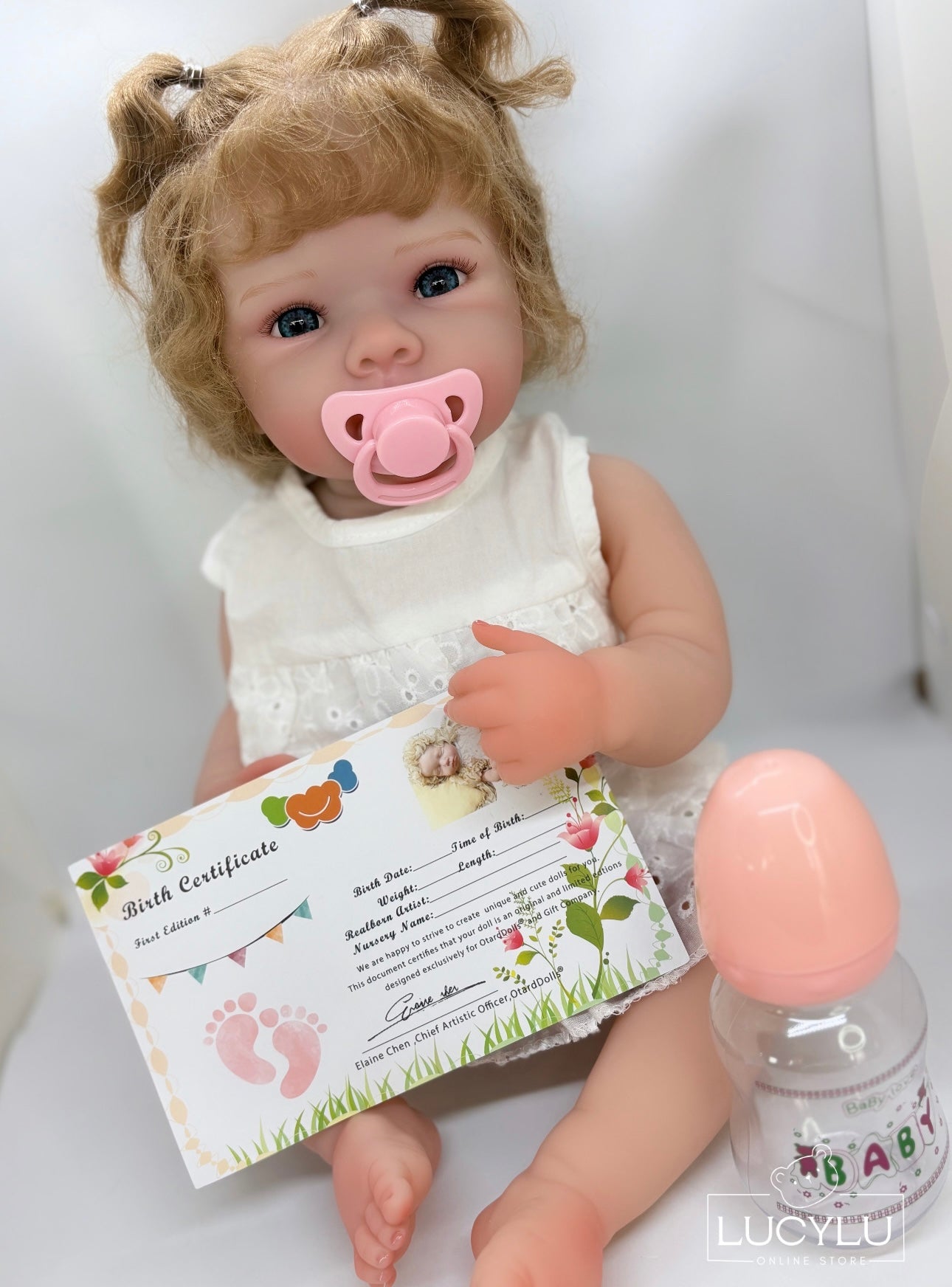 ✔️ Incluye: certificado, biberón, ropa de la foto, chupeta magnética, pañal y caja de regalo.