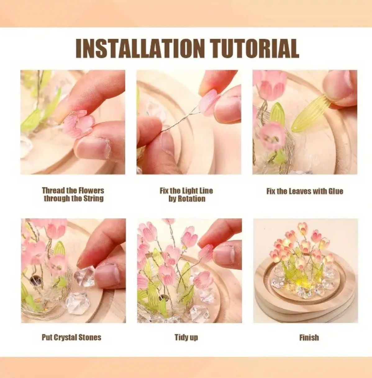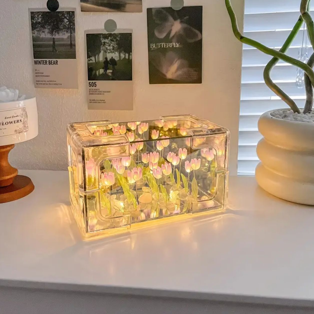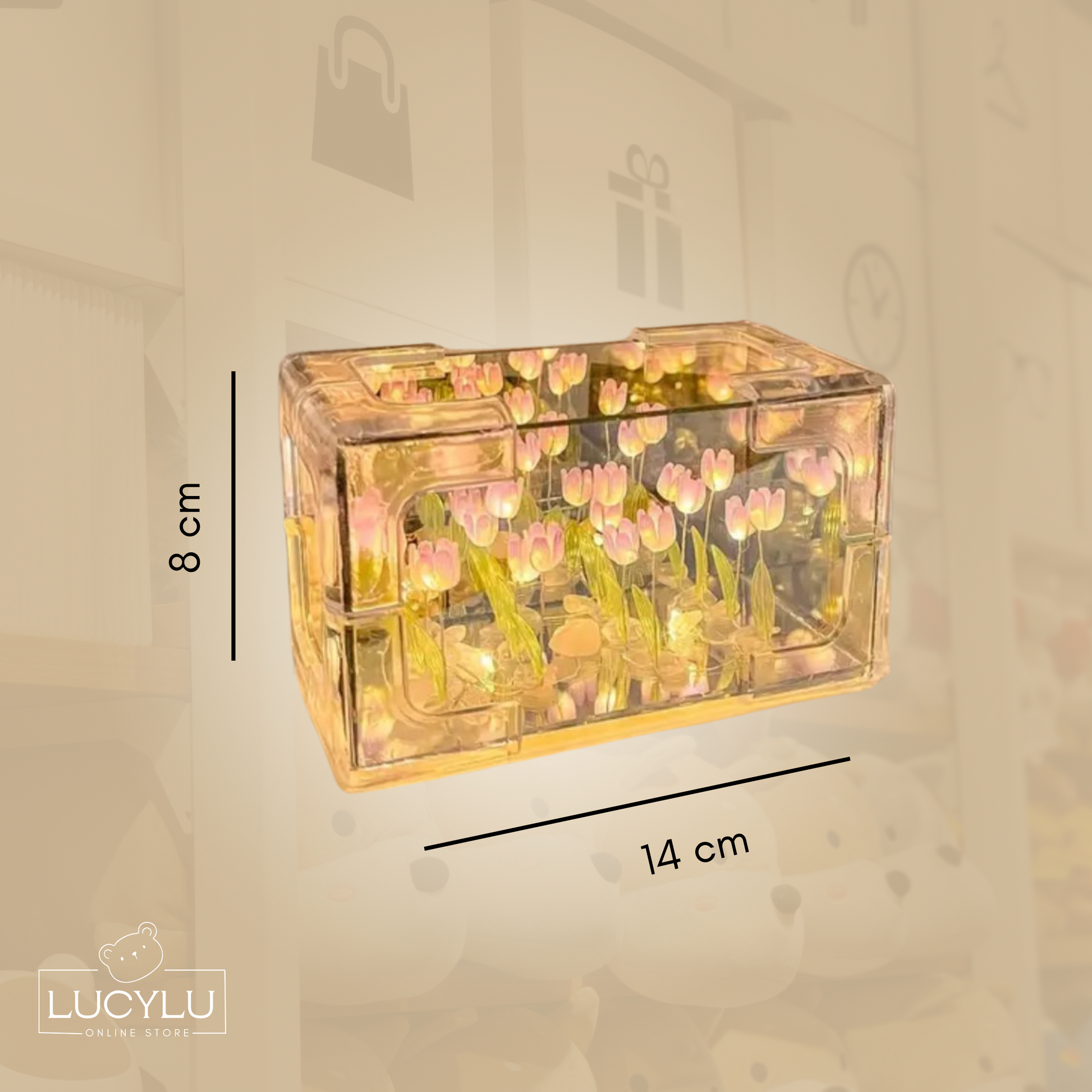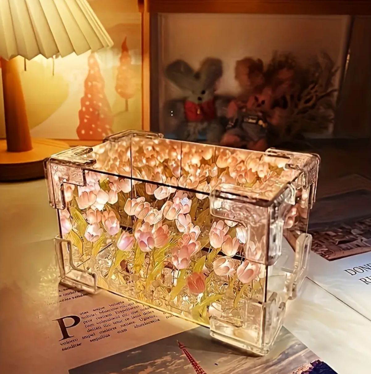 Lampara rectangular de 21 tulipanes 14cmx8cm. Conexión con usb.
