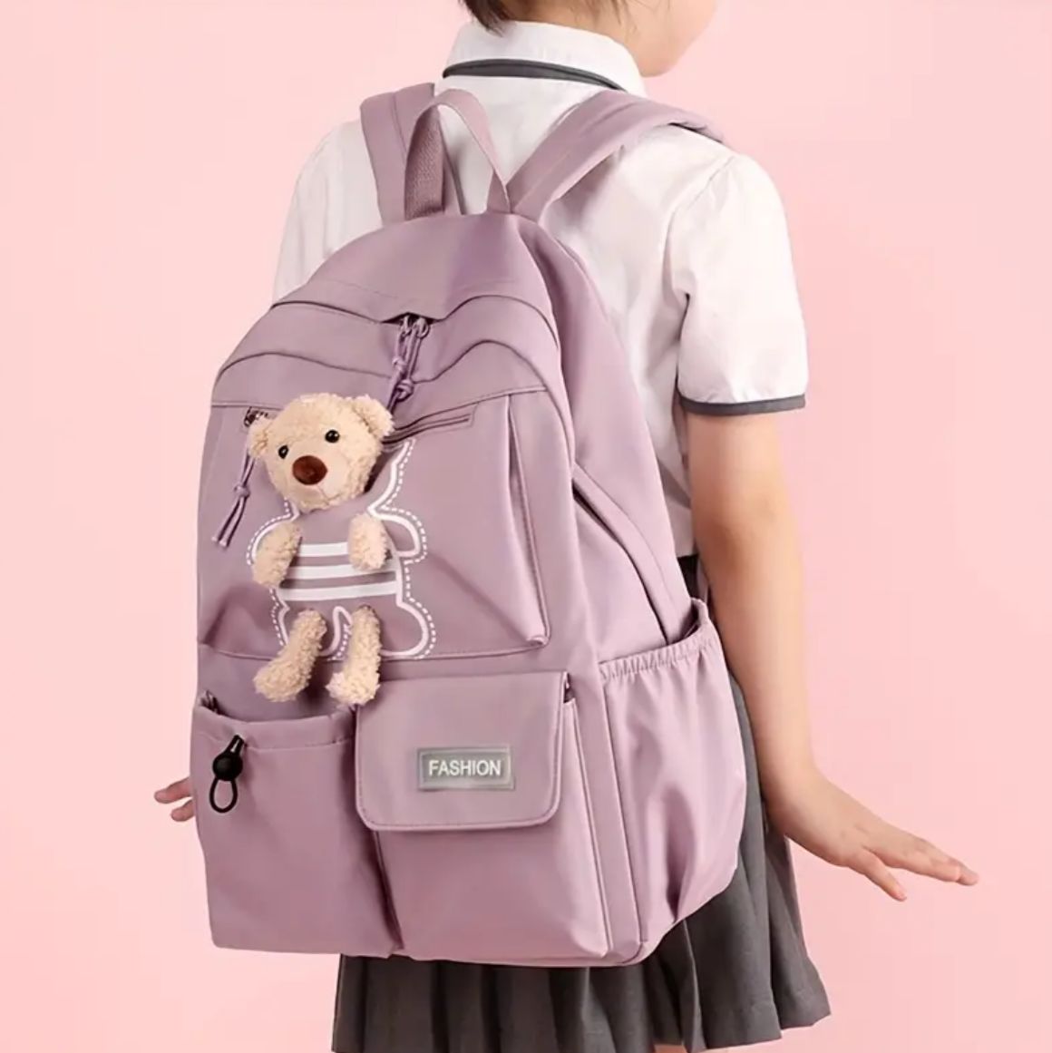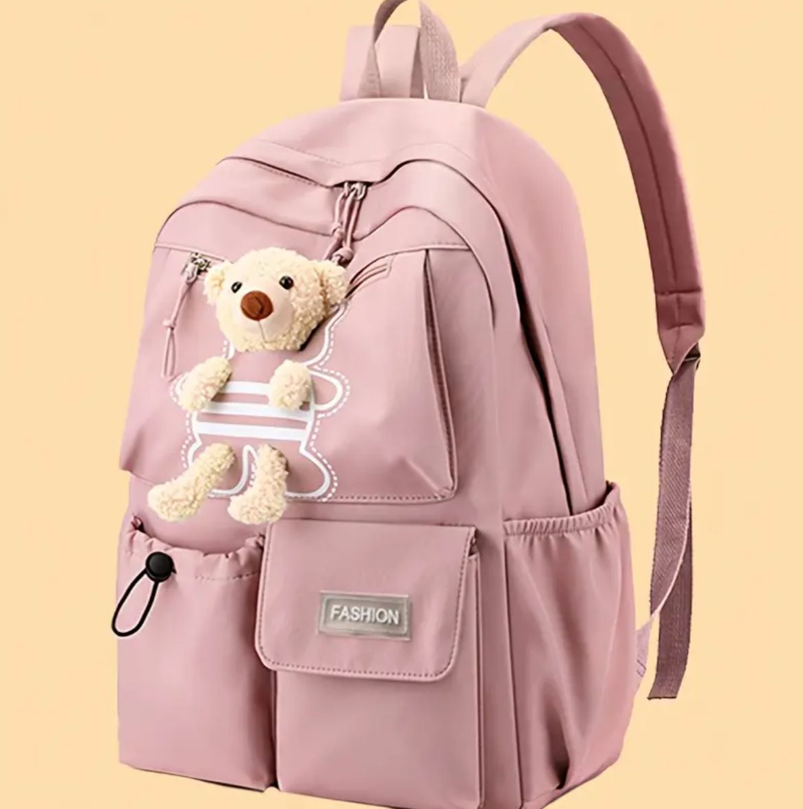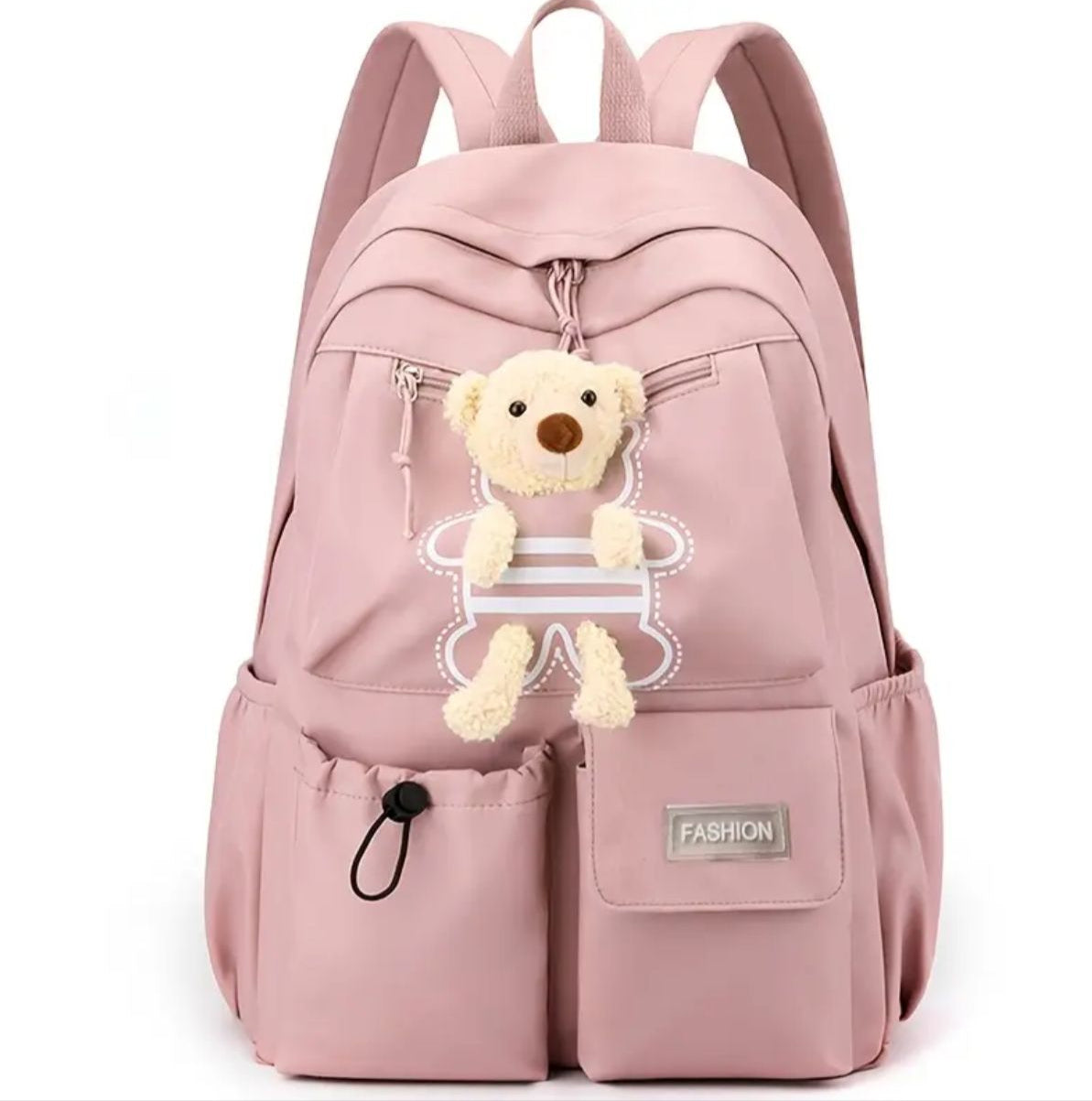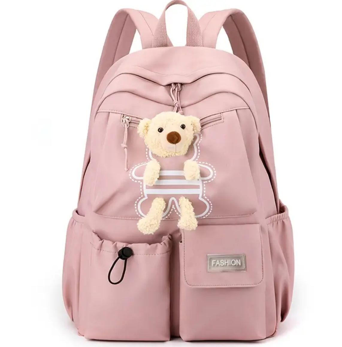 MOCHILA ESTILO COREANA DE NAILON EN COLOR ROSA PARA ESTUDIANTES.