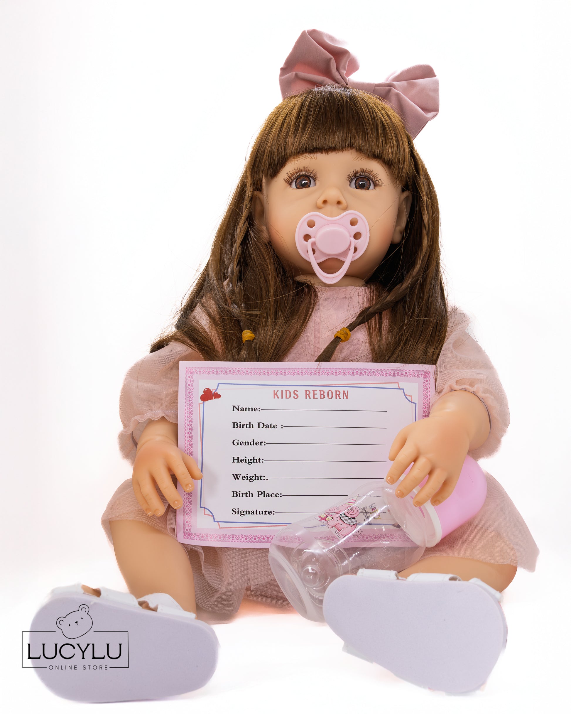 NIÑA REBORN CON VESTIDO ROSA Y LAZO