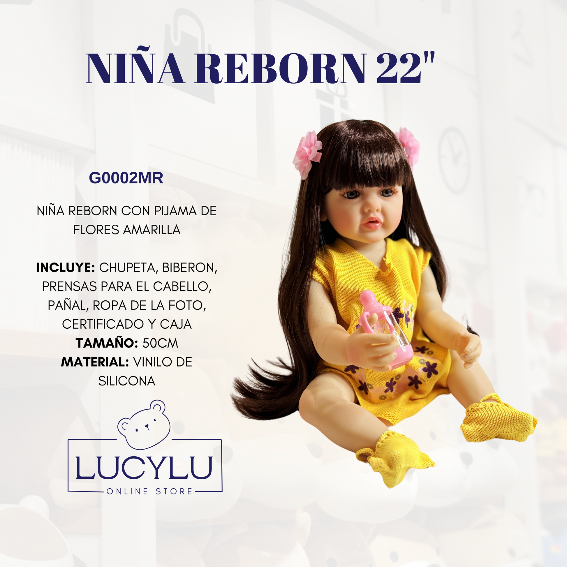 Niña Reborn de 22" completa en vinilo de silicona.