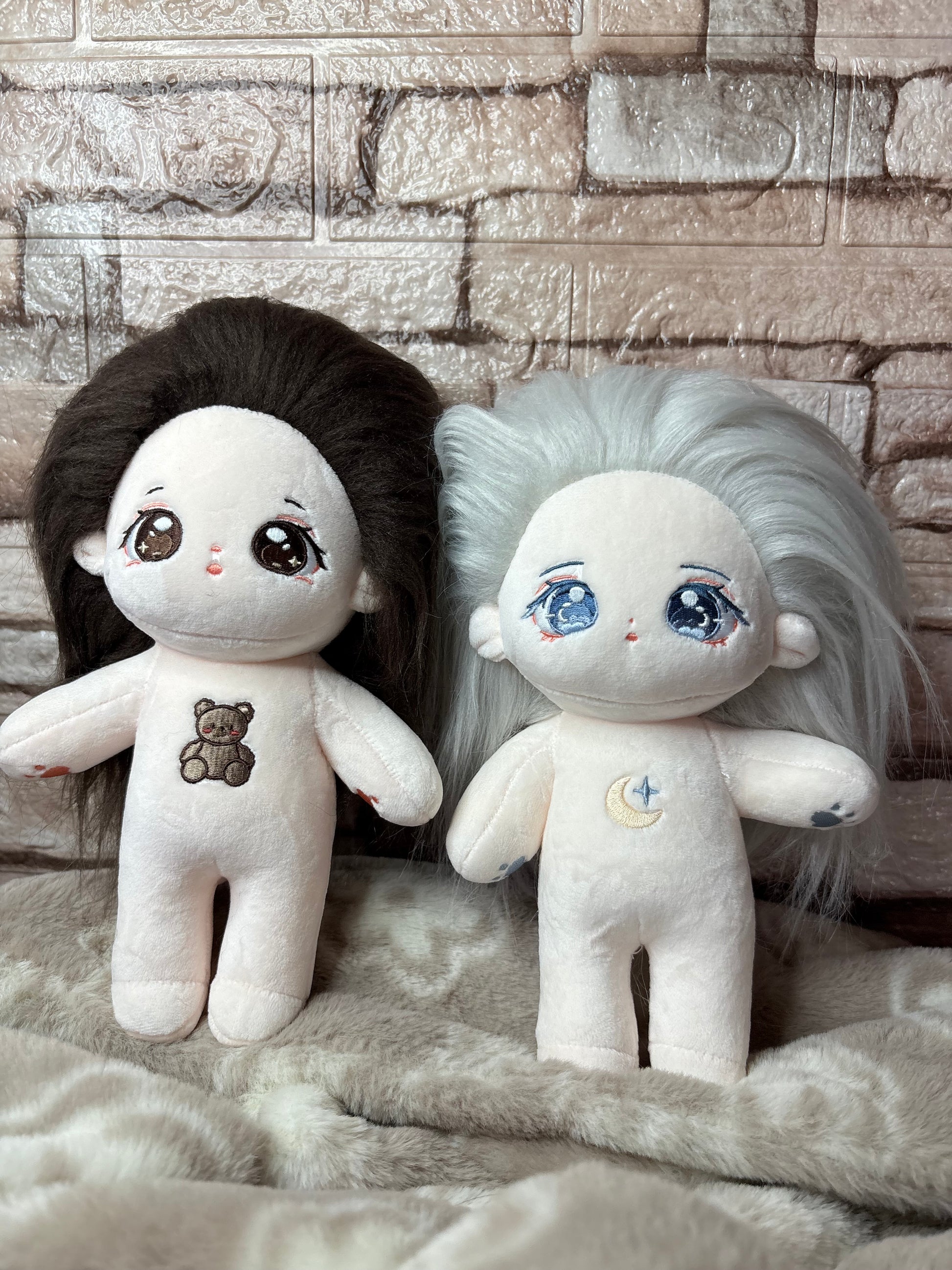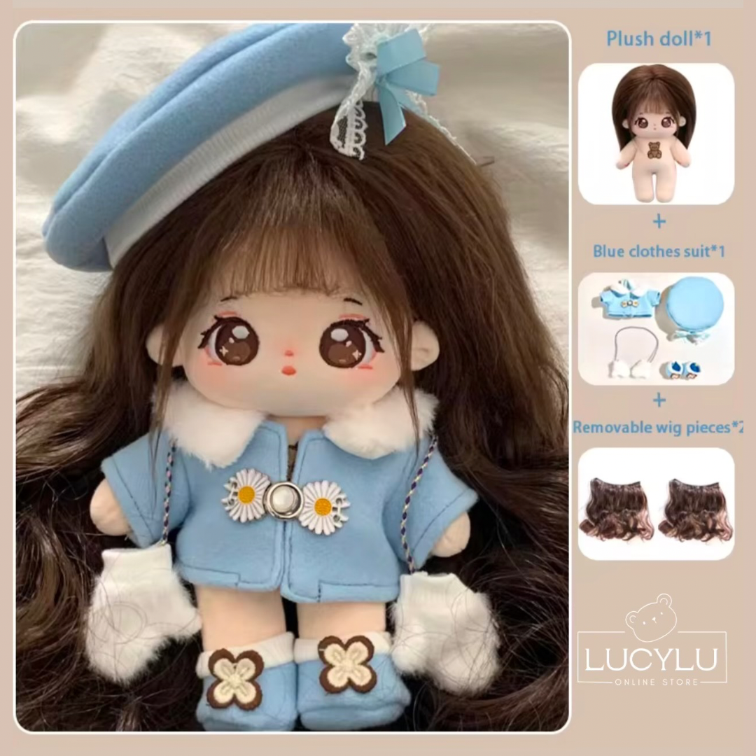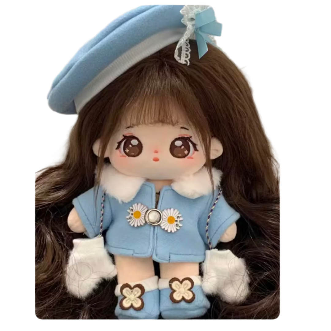 Muñeca de algodón con esqueleto, extensiones y ropa.