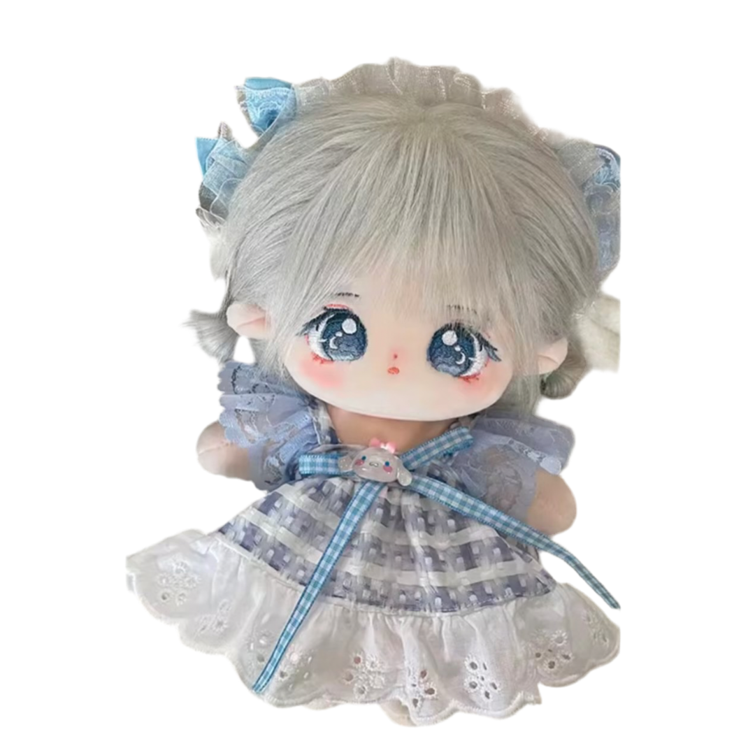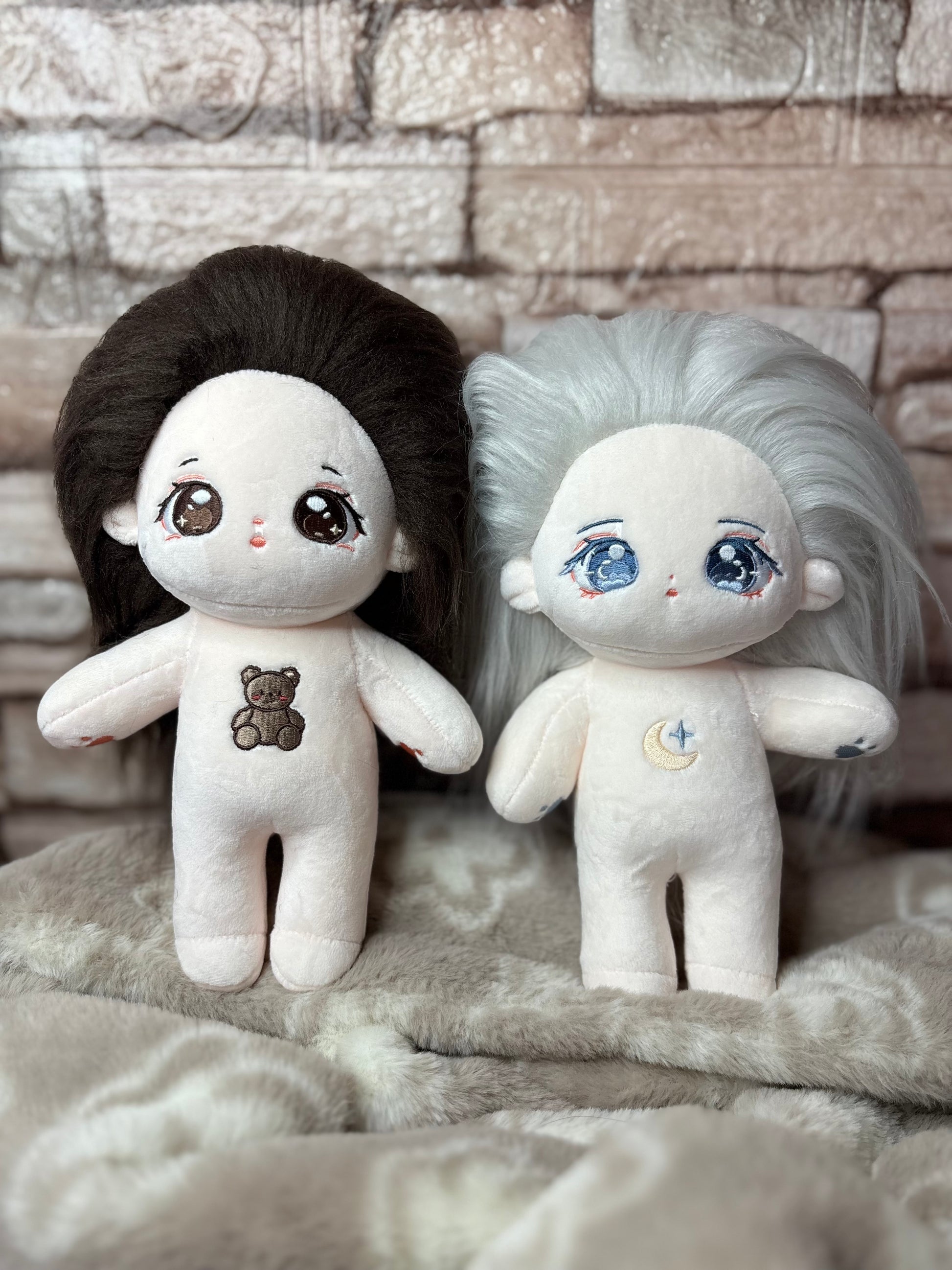 Muñeca de algodón con esqueleto, extensiones y ropa.